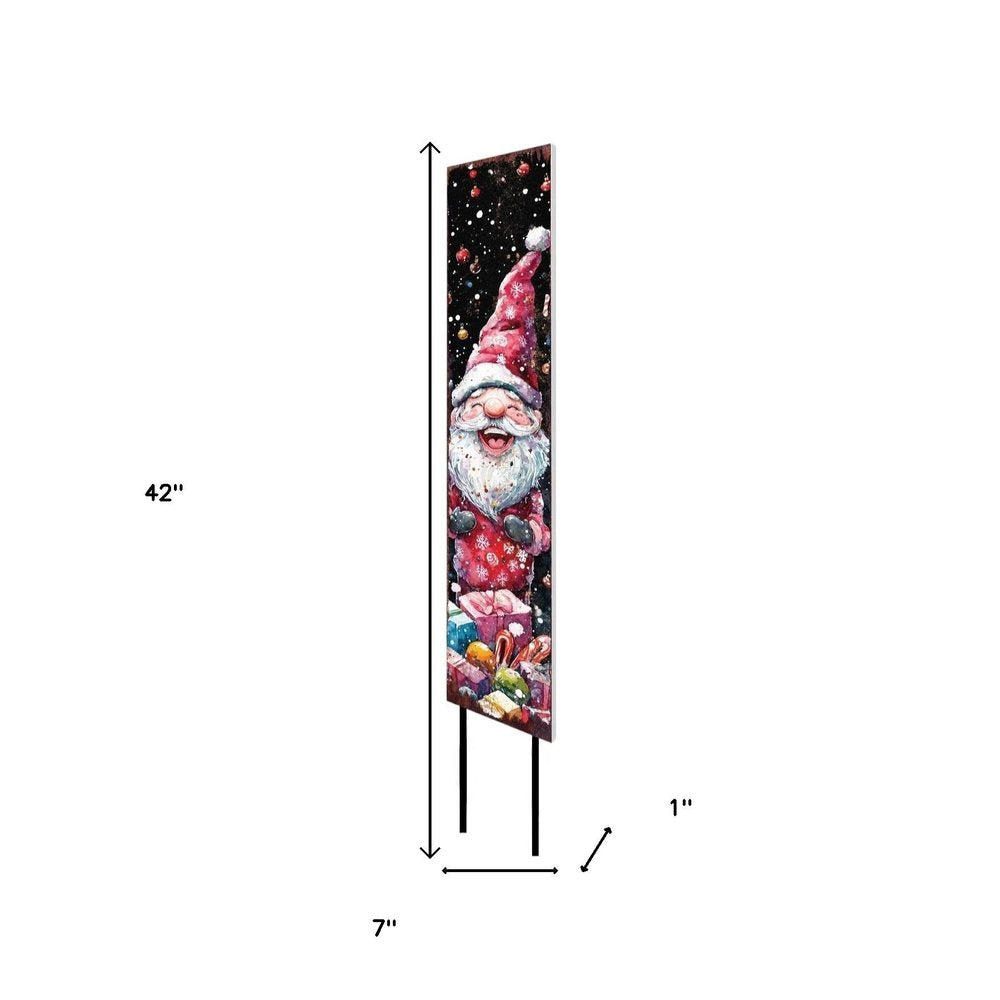 42" Black White And Red Solid Wood Christmas Santa Garden Stake