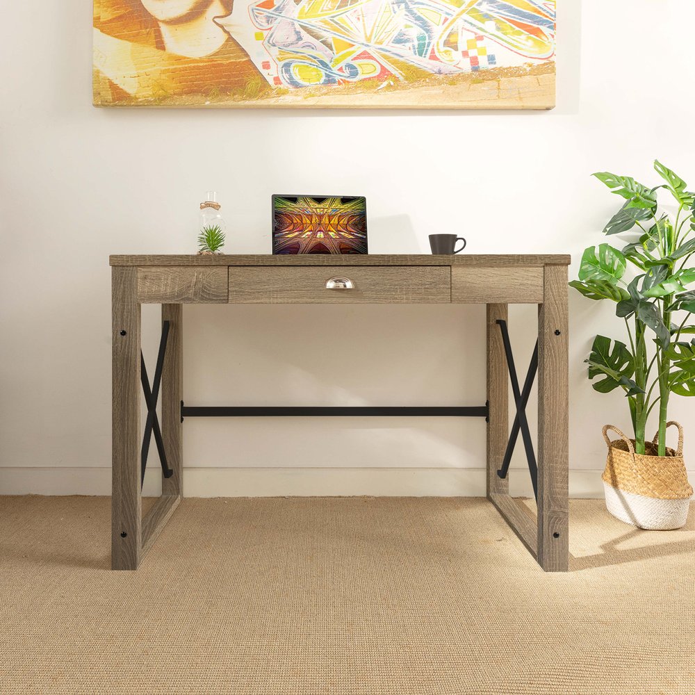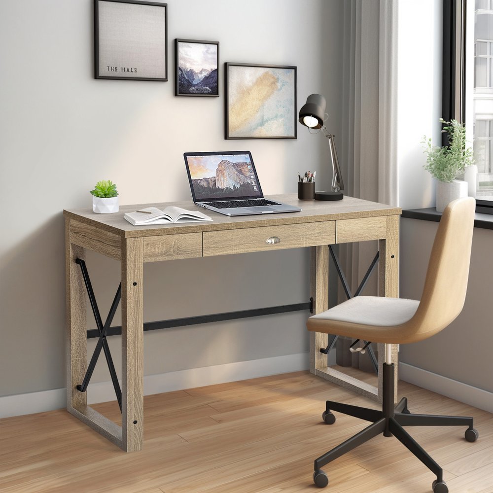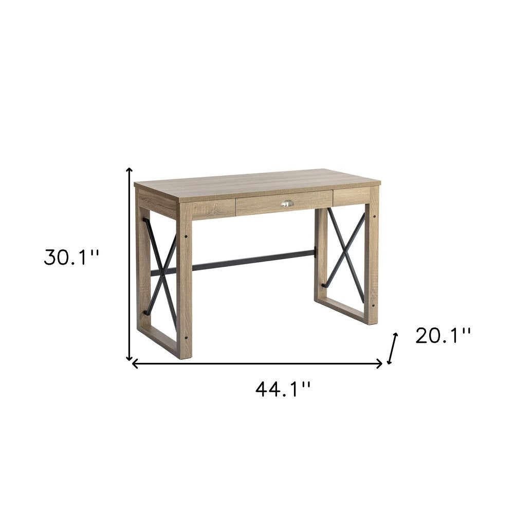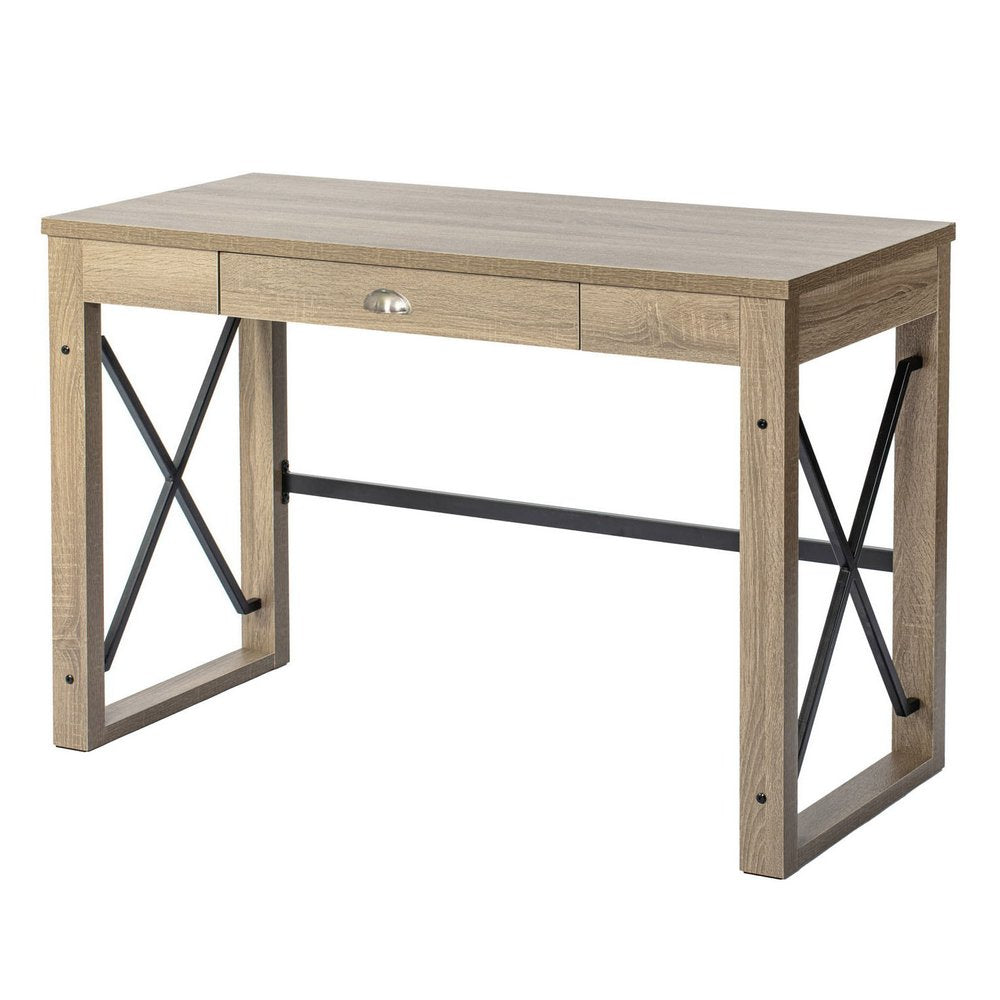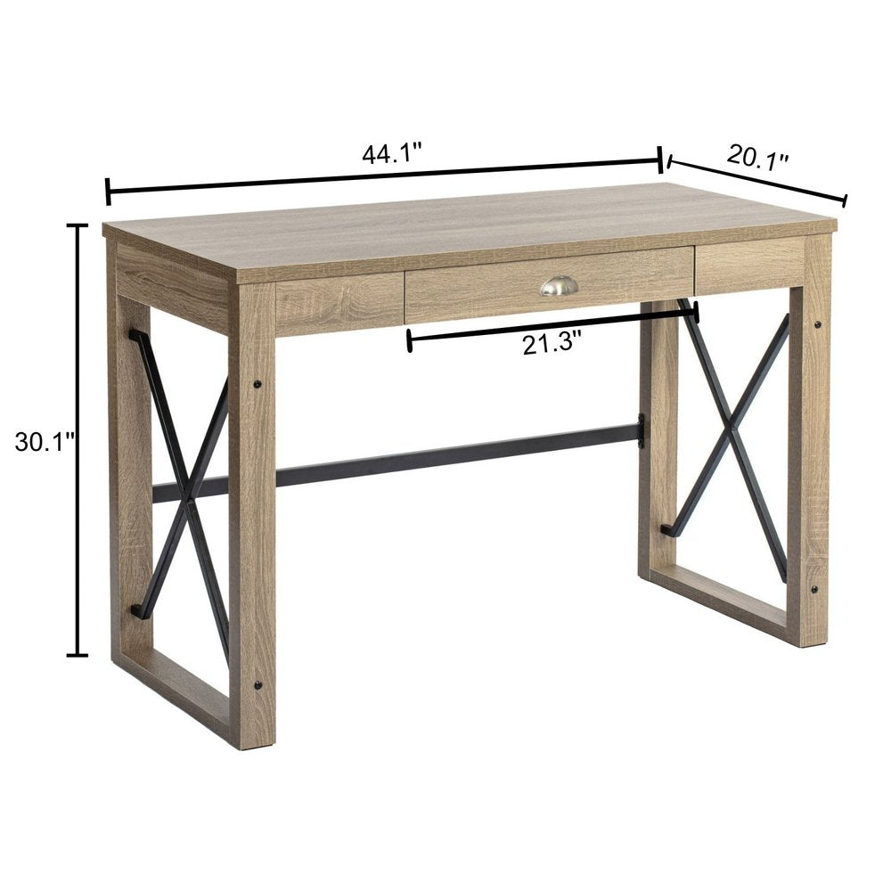Look like an executive when you add this 44-inch oak and black wood and metal sled computer desk to your office space. Designed to easily fit into most spaces, this classically shaped rectangular desk will turn your room into a productive workspace. A single drawer gives this desk some hidden storage for your office essentials. Forged with premium craftsmanship and design, this desk is built to last. 30.1-inch h x 44.1-inch w x 20.1-inch d.