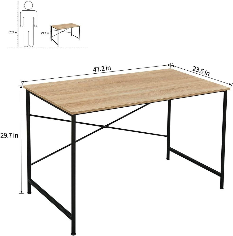 47" Natural and Black Wood and Metal Computer Desk