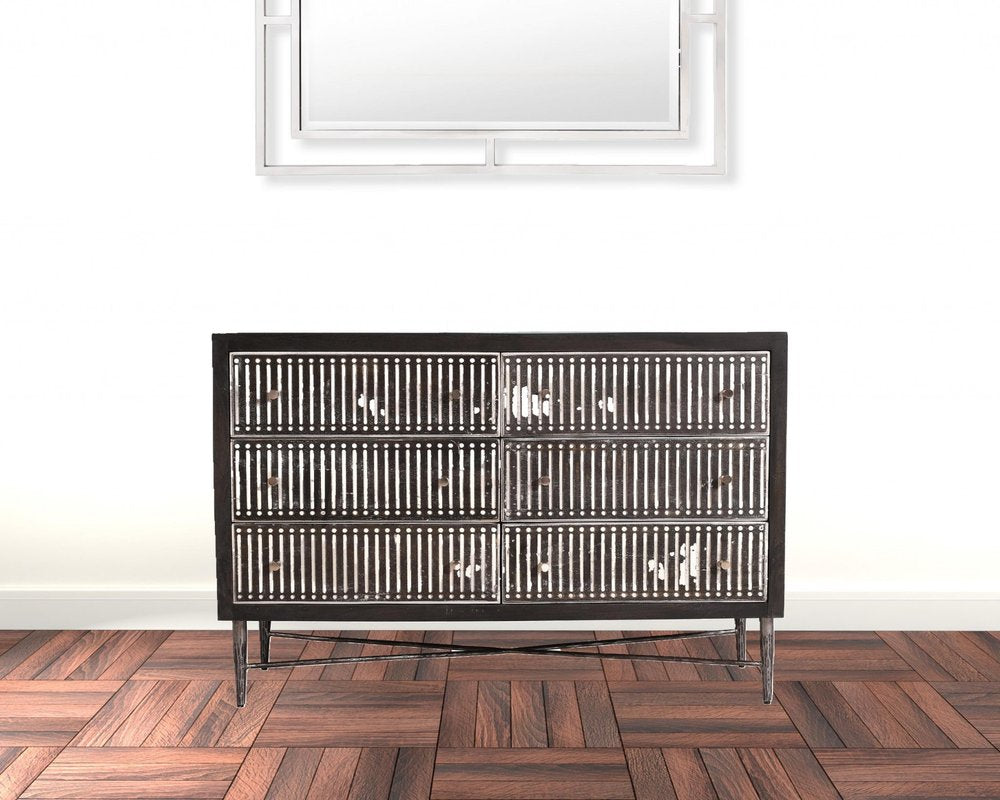 48" Antique Brown Solid Wood Six Drawer Double Dresser