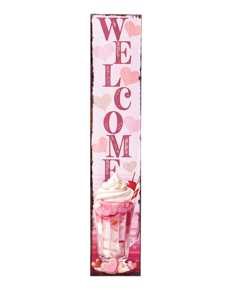 48" Pink Solid Wood Hearts Welcome Porch Sign