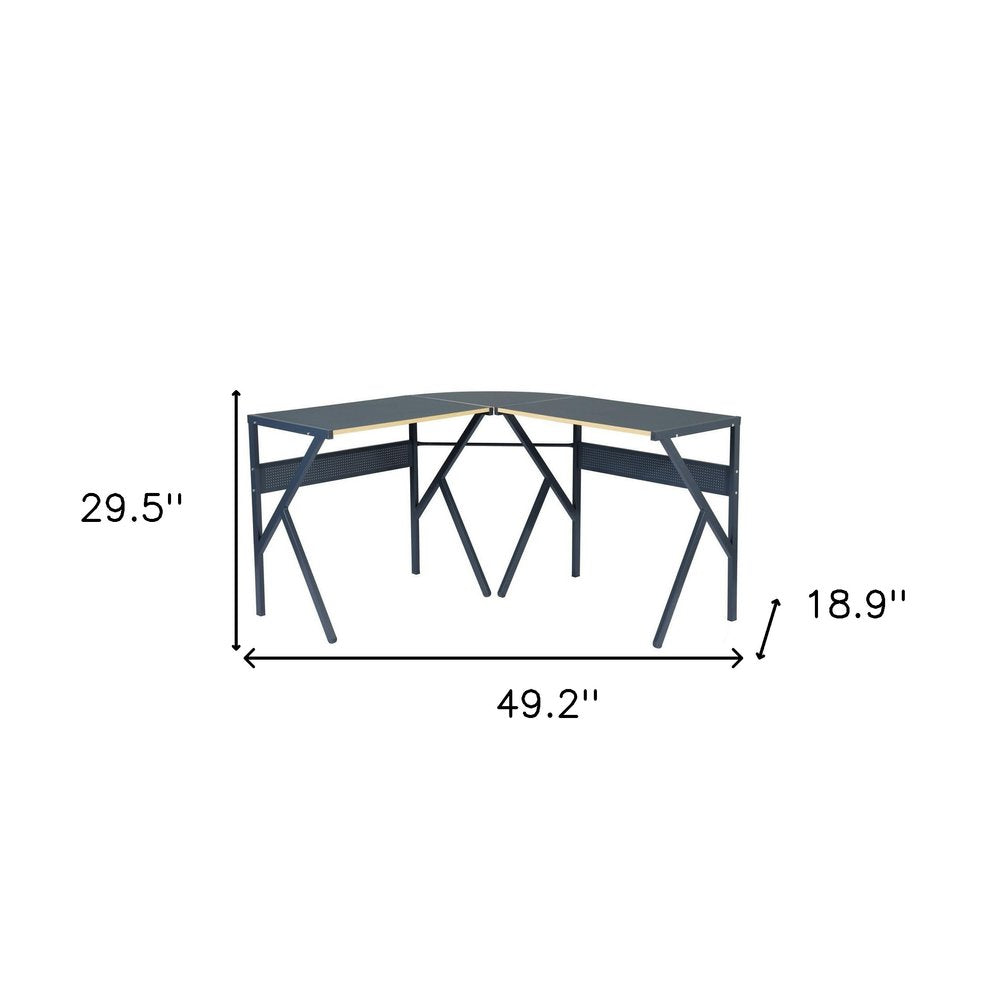 49" Black Wood and Metal Corner H-Shape Computer Desk