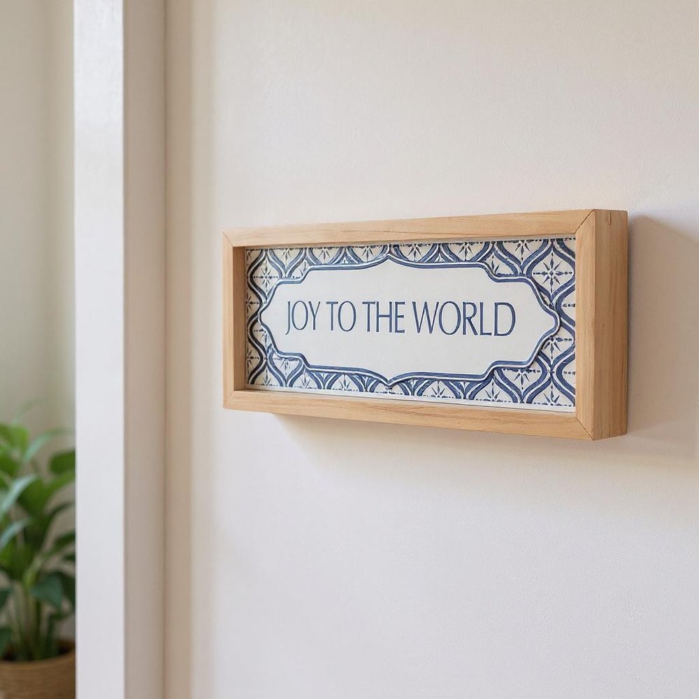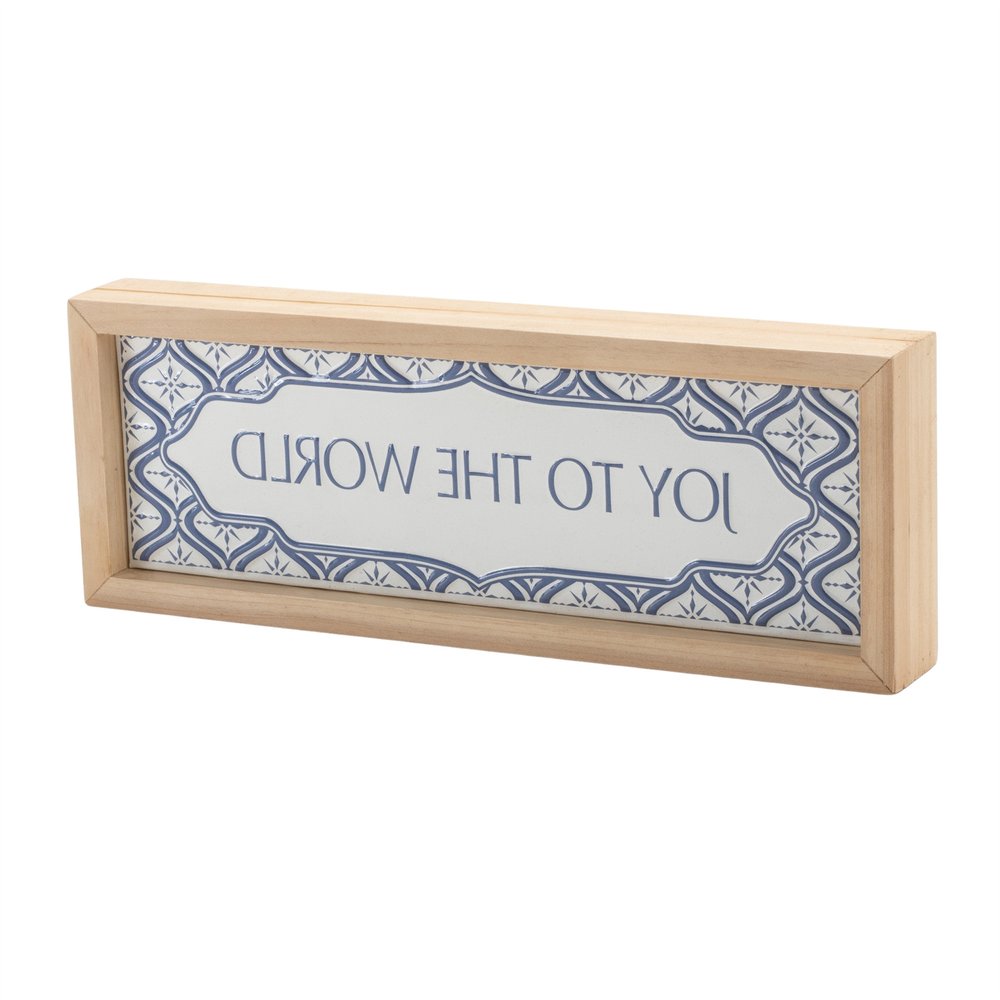 The 5-inch x 12-inch blue and white Christmas joy to the world wood framed art is a charming addition to your holiday decor. Crafted from high-quality wood, this piece showcases a traditional design that celebrates the festive spirit. Its rectangular shape makes it perfect for various wall spaces, adding a touch of elegance wherever it's displayed. Featuring a lovely blue and white color palette, this framed art beautifully complements other decorations while enhancing the warmth of your home. Bring joy and cheer into your space with this delightful wall decor piece. 4.50-inch h x 12.00-inch w x 1.75-inch d.