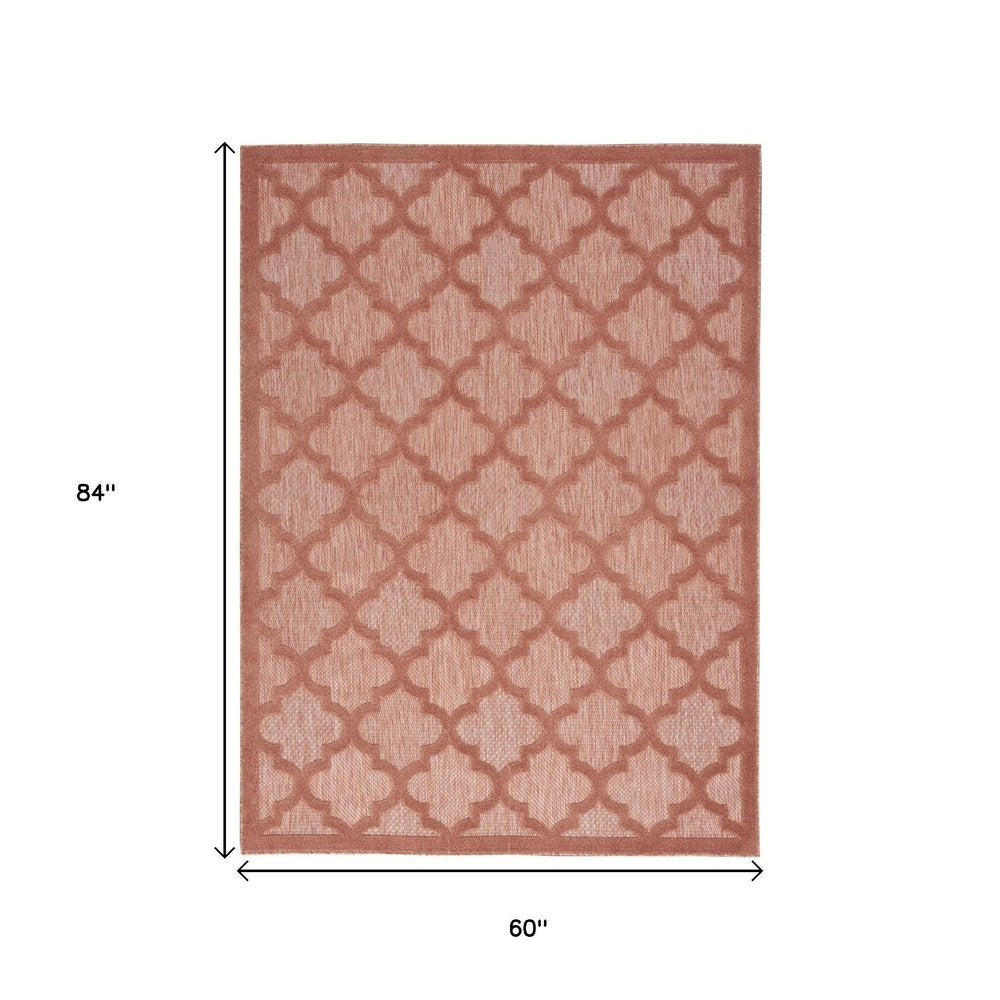 Add great coloration and comfortable texture to your space with this 5-foot x 7-foot coral indoor outdoor area rug. Makes a great way to dress up your patio, porch, or poolside, but also works well as a durable and easy to maintain option in the kitchen, family room, or mudroom. Crafted from a blend of polypropylene and polyester, this machine-made rug offers exceptional durability for high-traffic areas. Its rectangular shape provides ample coverage, enhancing any outdoor setting with its vibrant coral hue. 60-inch h x 84-inch w x 0.25-inch d.