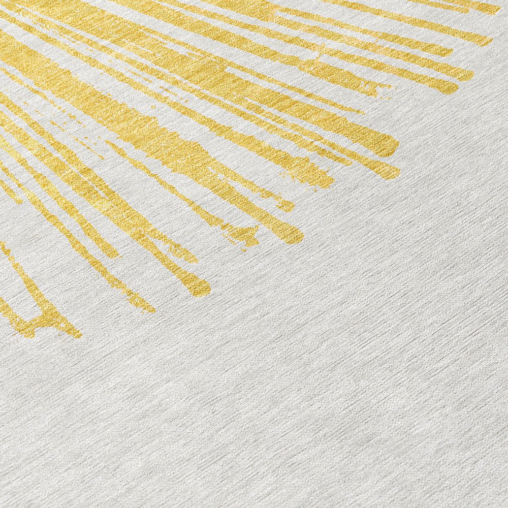 5' X 8' Gold And Ivory Abstract Washable Indoor Outdoor Area Rug