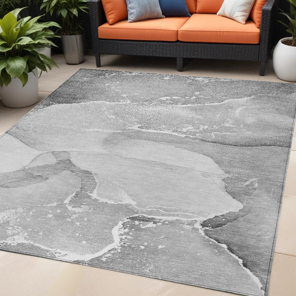 5' X 8' Gray and Ivory Abstract Washable Non Skid Indoor Outdoor Area Rug