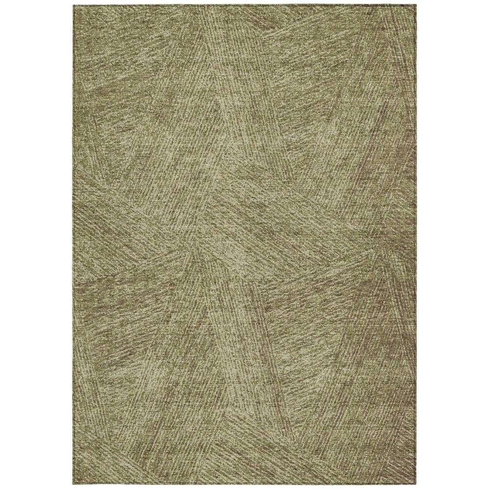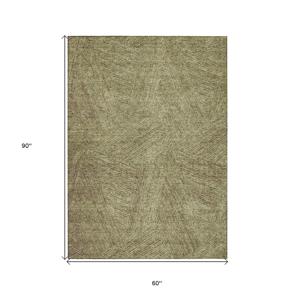 5' X 8' Green Beige And Brown Abstract Washable Indoor Outdoor Area Rug