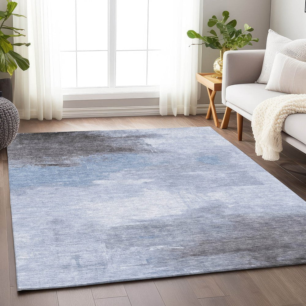 5' X 8' Sky Blue Gray And Ivory Abstract Washable Indoor Outdoor Area Rug