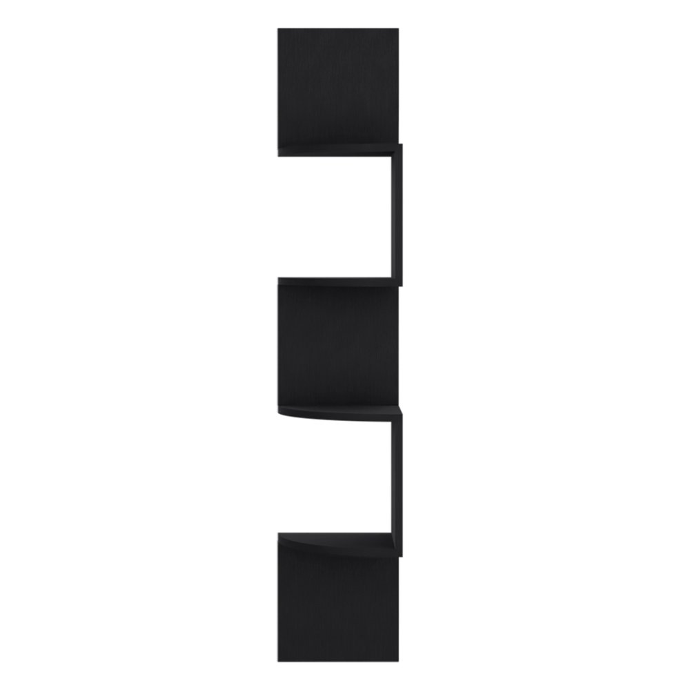 The 52-inch black wood wall mounted corner shelf is a stylish addition to your living room. Crafted from durable manufactured wood, this shelf offers both functionality and modern aesthetic appeal. Its unique corner design maximizes space while providing an ideal place to display books, plants, or decorative pieces. The elegant black color complements a wide range of decor styles, making it a versatile choice for any home. With its sleek lines and contemporary finish, this shelf enhances the overall ambiance of your space. Experience the perfect blend of form and function with this sophisticated wall-mounted solution that brings organization and charm to your living area. 51.50-inch h x 9.80-inch w x 9.79-inch d.
