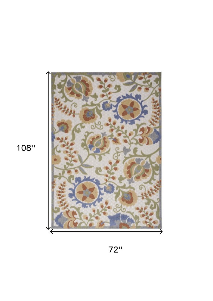 6' X 9' Ivory And Blue Indoor Outdoor Area Rug