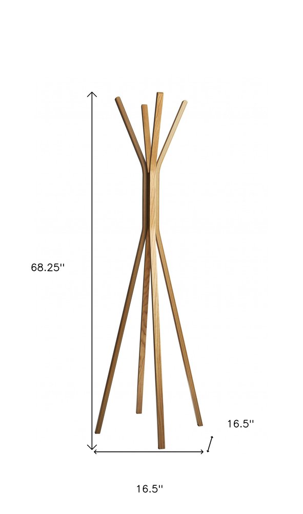68" Natural Modern Wood Coat Tree Rack