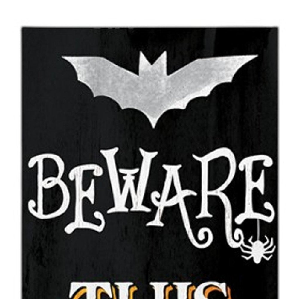 72" Black And White Solid Wood Beware Halloween Ghost Porch Sign