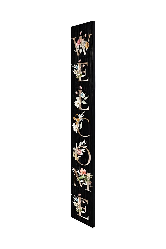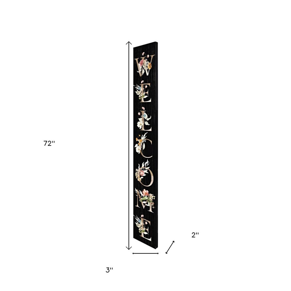 The 72-inch black solid wood floral welcome porch sign adds a charming touch to your outdoor space. Crafted from durable solid wood, this piece ensures longevity while maintaining its aesthetic appeal. Its traditional style beautifully complements any garden or porch setting. The striking black color offers a sophisticated contrast against greenery, making it an eye-catching focal point. Perfect for greeting guests, this welcome sign brings warmth and hospitality to your home. Whether placed by the front door or in the garden, it enhances your outdoor decor and creates an inviting atmosphere. This sign is not just a decorative element; it embodies a sense of home and friendliness for all who visit. 72.00-inch h x 3.00-inch w x 2.00-inch d.
