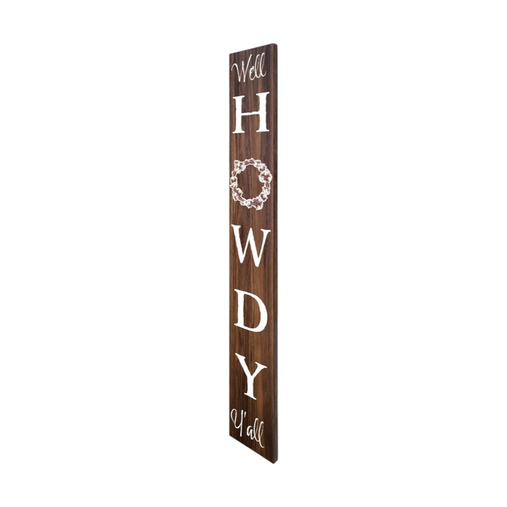 The 72-inch brown and white solid wood well howdy porch sign adds a charming touch to your outdoor space. Crafted from solid wood, this durable piece is designed to withstand the elements while enhancing your porch's aesthetic. Its traditional style brings a classic appeal, making it a perfect complement to any home exterior. The inviting brown and white color scheme ensures it stands out, creating a warm welcome for guests. This porch sign serves not just as a decorative item but also as a delightful conversation starter. Elevate your garden decor with this thoughtfully designed accessory, perfect for showcasing your hospitality and love for the outdoors. 72.00-inch h x 9.25-inch w x 2.00-inch d.