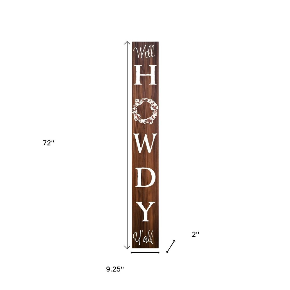 72" Brown And White Solid Wood Well Howdy Porch Sign
