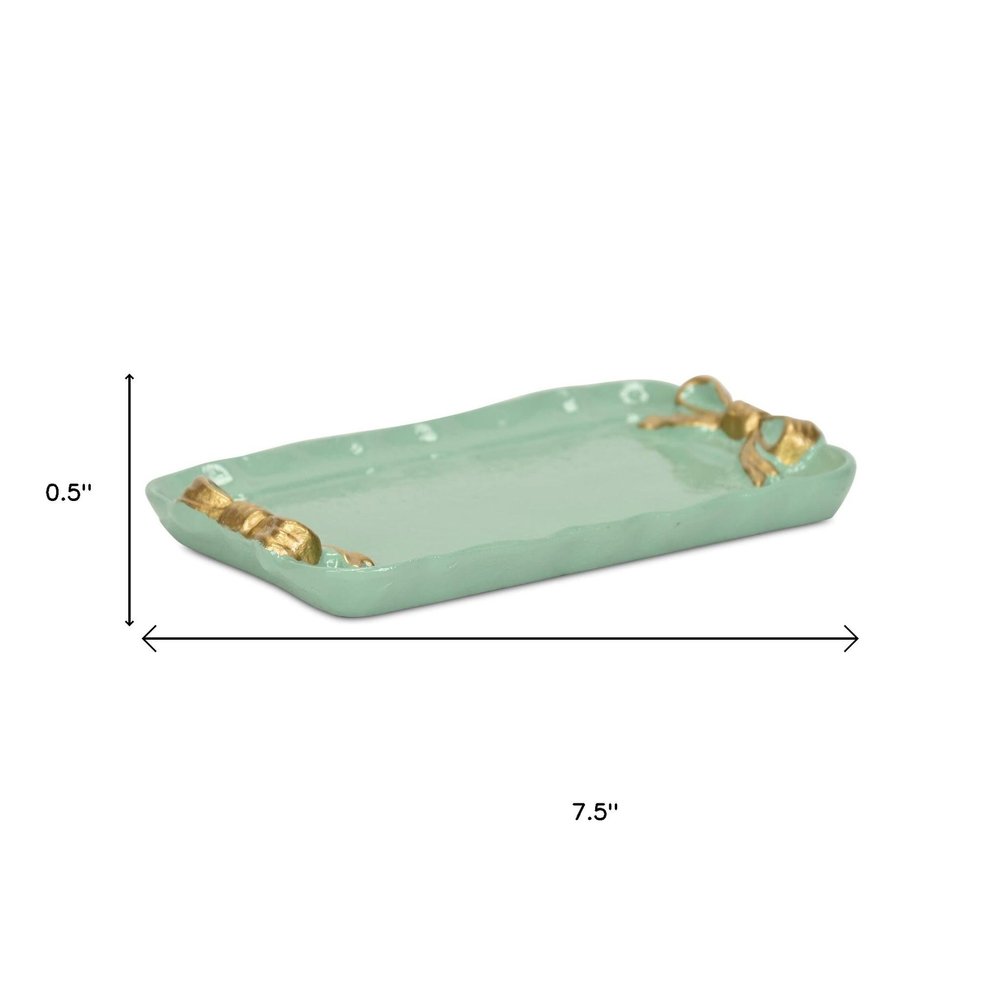 8" Aqua And Gold Cast Iron Ribbons Vanity Tray