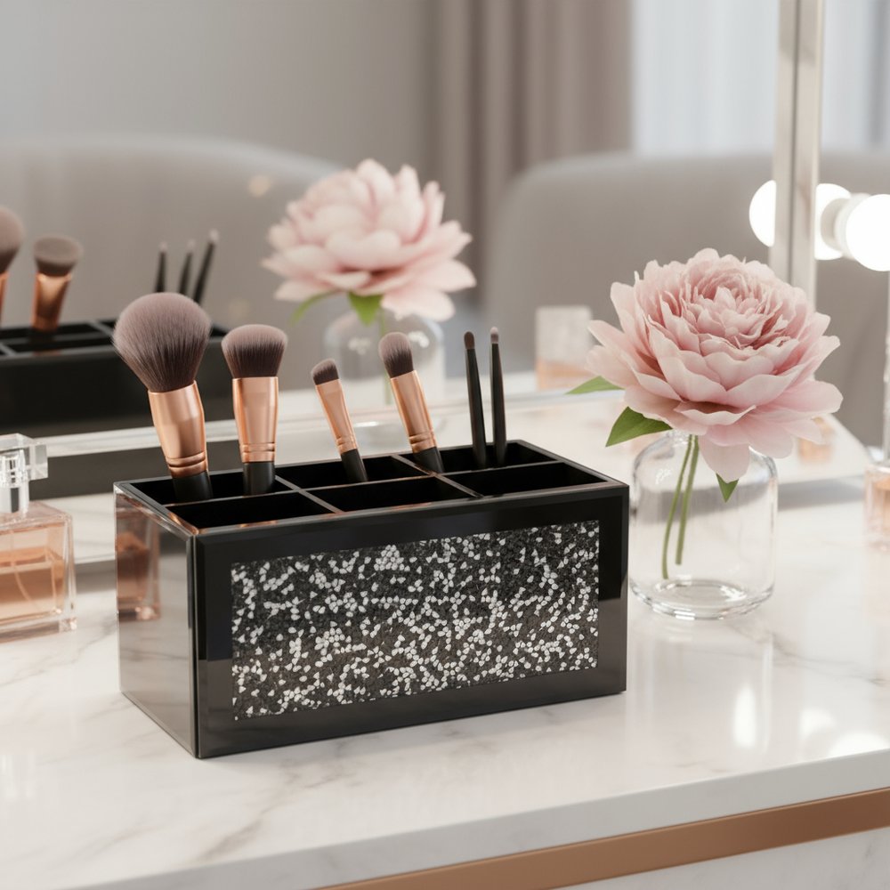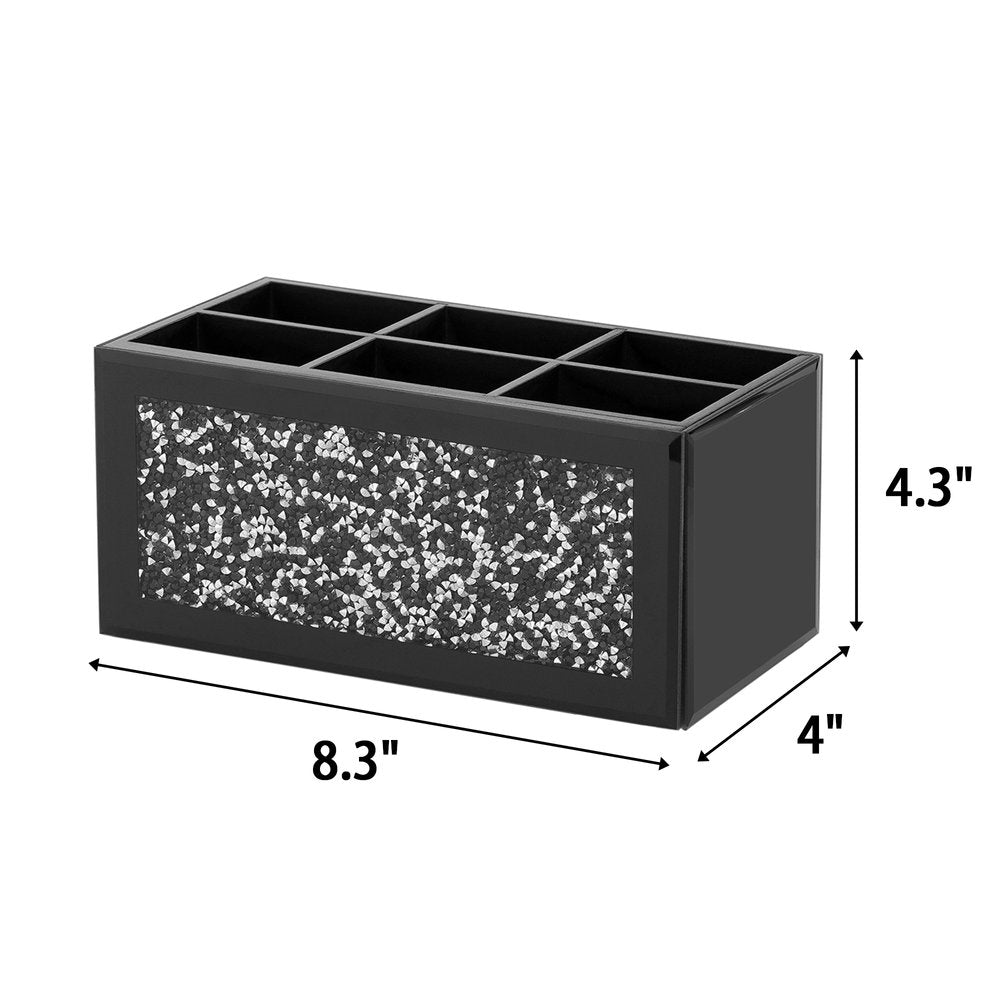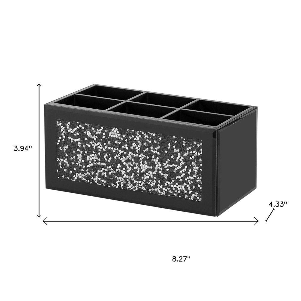 8" Black And Silver Glass Six Section Jewelry Organizer With Faux Crystals