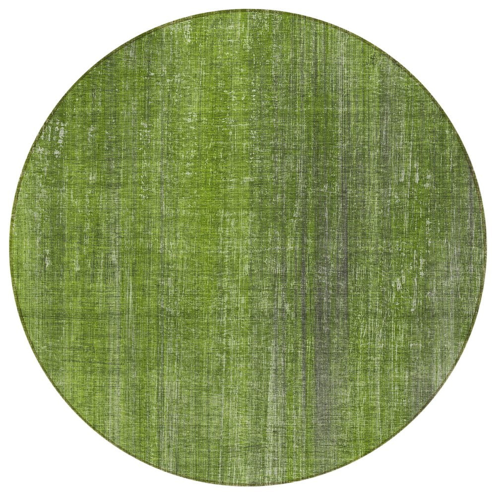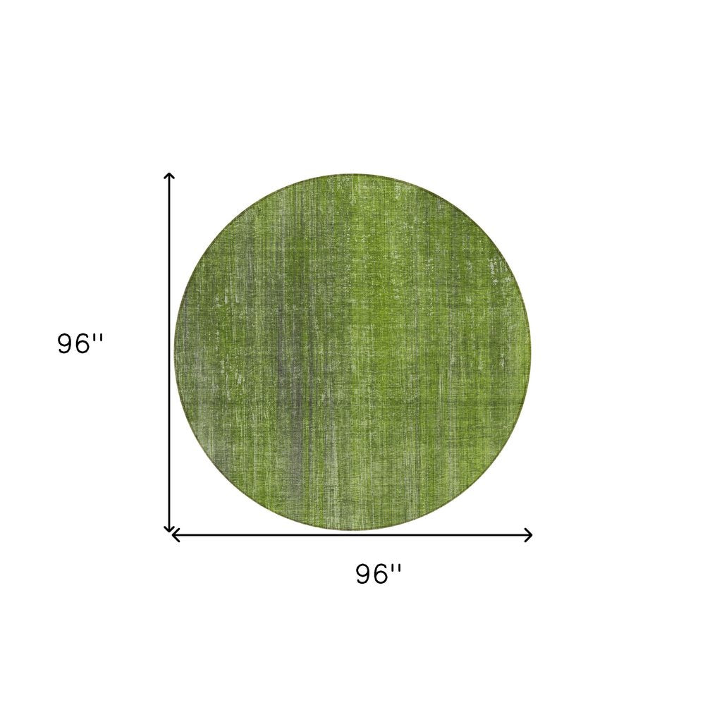 8' Round Green Round Striped Washable Non Skid Indoor Outdoor Area Rug
