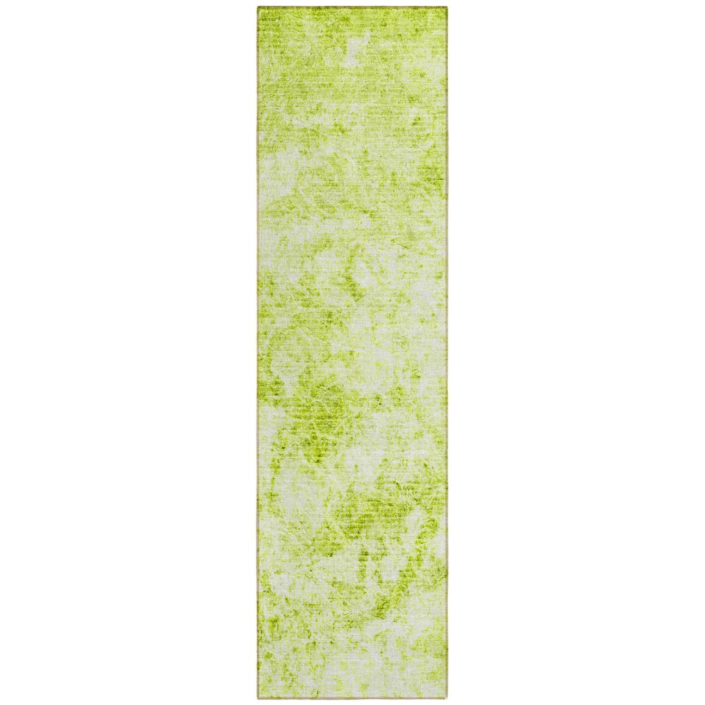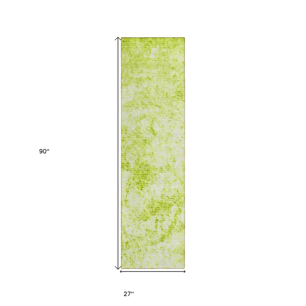 8' Runner Lime Green Abstract Washable Non Skid Indoor Outdoor Runner Rug