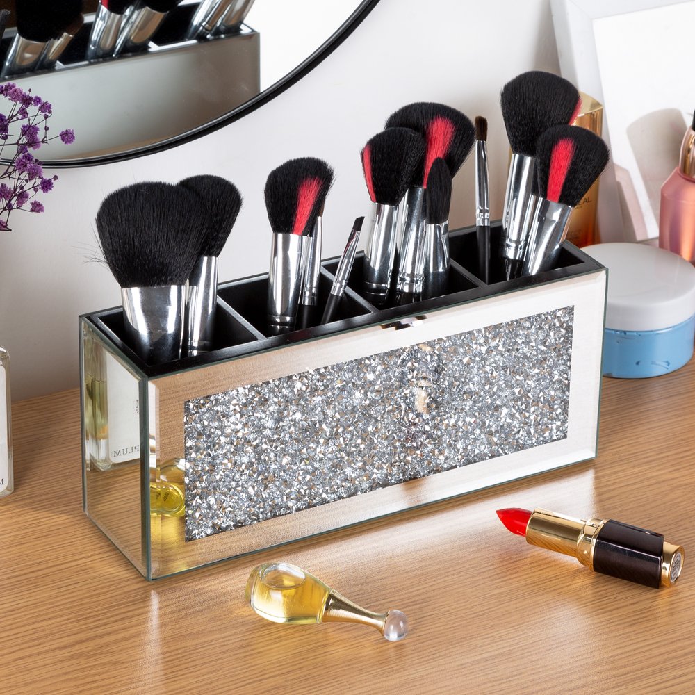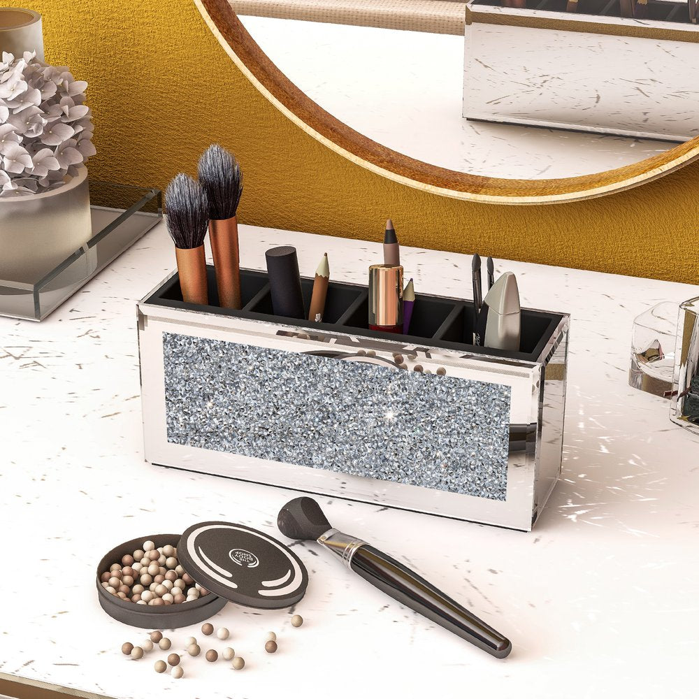 9" Silver Mirrored Glass Four Section Jewelry Organizer With Faux Crystals
