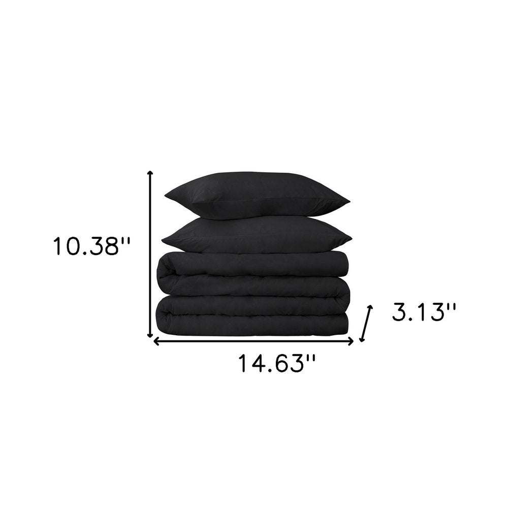 Similar to a pillowcase, this black queen cotton blend 650 thread count washable duvet cover set is intended to encase your duvet or comforter for added protection. With sturdy construction from cotton blend, the covering is designed to be soft and long lasting. As a bonus, this bedding fits the best of both worlds! It was expertly designed to stay warm in the winter but cool in the summer. Queen Sizing is perfect for the primary bedroom. A great addition to your bedroom, this duvet cover will add a soft touch of plushness and comfortable warmth. Style, durability, and comfort combine so you can rest easy knowing that you're covered duvet cover. 10.38" H x 14.63" W x 3.13" D