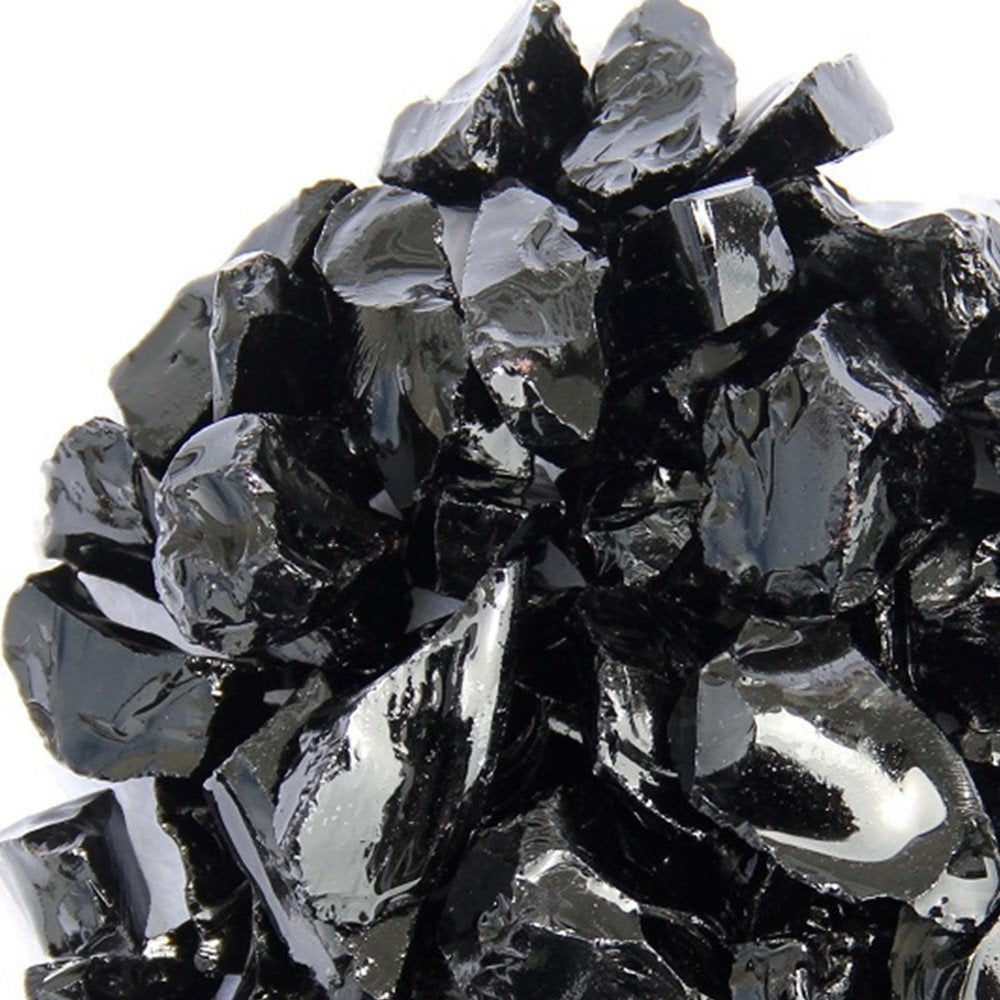 Relax, sit back, and enjoy your evenings in style. Get this black round reflective fire pit glass, the perfect accessory for your home fire pit. Why settle for boring heat, when you could maximize it. Make the most out of your firepit when you add these round black tempered fire glass rocks. 0.5-inch h x 0.5-inch w x 0.75-inch d.