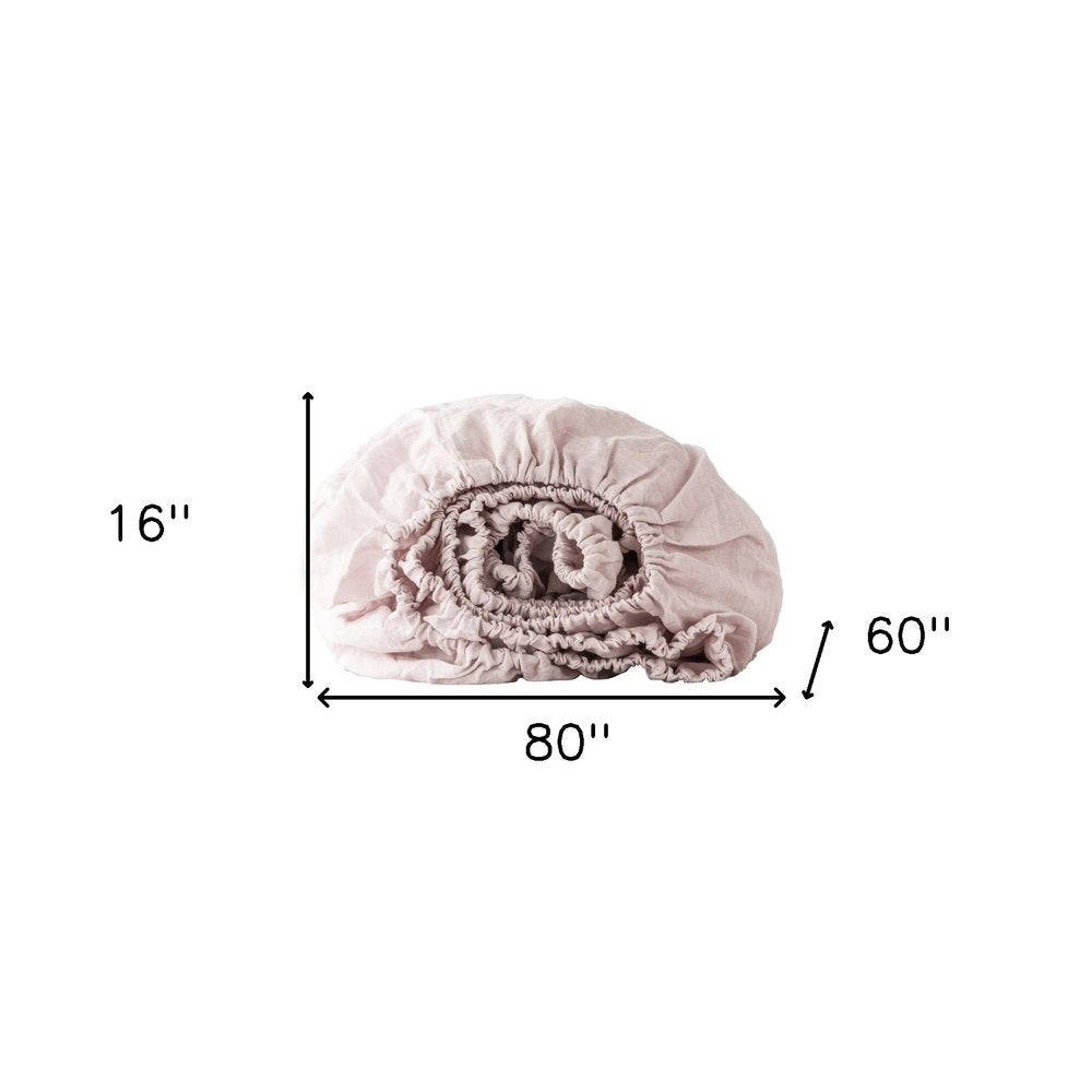 Experience hotel-quality comfort at home. This champagne pink linen queen fitted sheet is perfect for creating a luxurious retreat. Crafted from premium quality linen that is known for its moisture wicking properties to keep you cool and comfortable, these sheets are a luxury but so worth it. They are breathable, have a soft thick texture that will get softer over time, and are wrinkle resistant (not wrinkle free). Rest easier and longer with this high-quality sheeting. 16-inch H x 80-inch W x 60-inch D