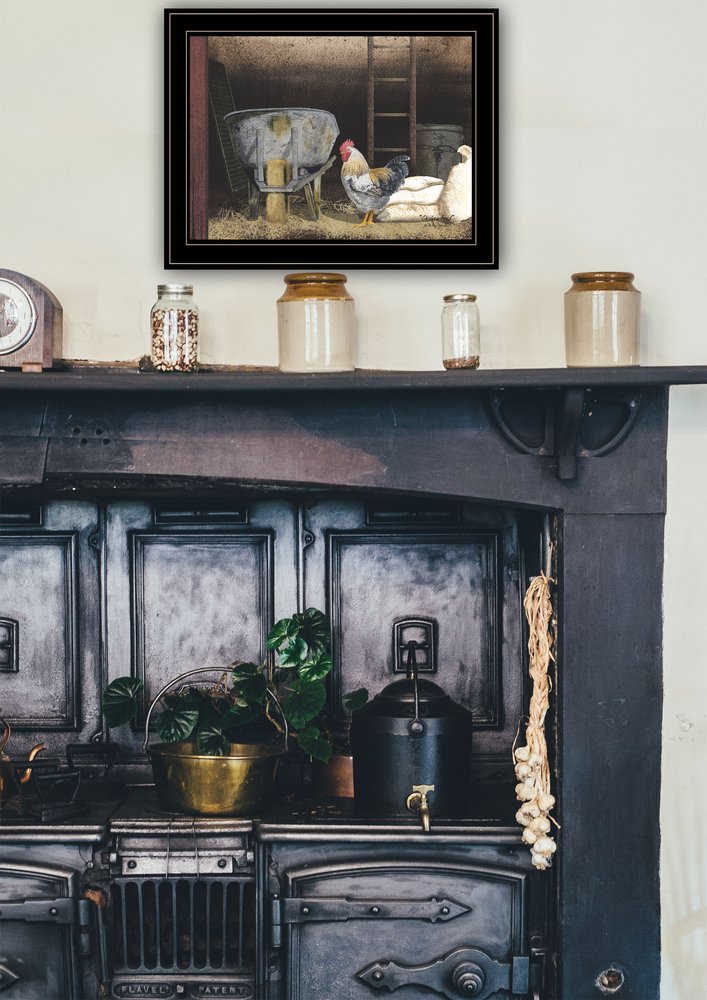 Unique and decorative, this chicken feed 2 black framed print wall art will leave a lasting impression. Update your walls with this farm animal decor. This print is a visual artistic expression that allows you to decorate your space in style. Reproduced for you on paper, this hanging decorative accent will be a trendy and fashionable way to dress your walls. Hang on your wall to add some up to date fashion and decoration. Utilize this opportunity to create a focal point in the room with this fabulous wall decor option. 15-inch H x 19-inch W x 1-inch D