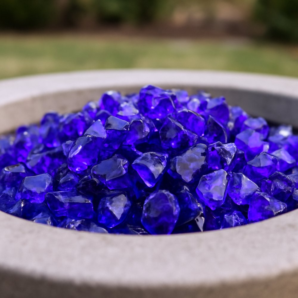 Relax, sit back, and enjoy your evenings in style. Get this cobalt round reflective fire pit glass, the perfect accessory for your home fire pit. Transform your fire feature into a stunning centerpiece with this cobalt round tempered fire glass. Crafted from high-quality glass, it enhances the beauty of your flame while ensuring durability against the elements. This stunning cobalt color adds a vibrant touch to any outdoor setting, making your gatherings more inviting and visually appealing. Compatible with propane, it offers a versatile solution for your outdoor heating needs. 0.5-inch h x 0.5-inch w x 0.75-inch d.