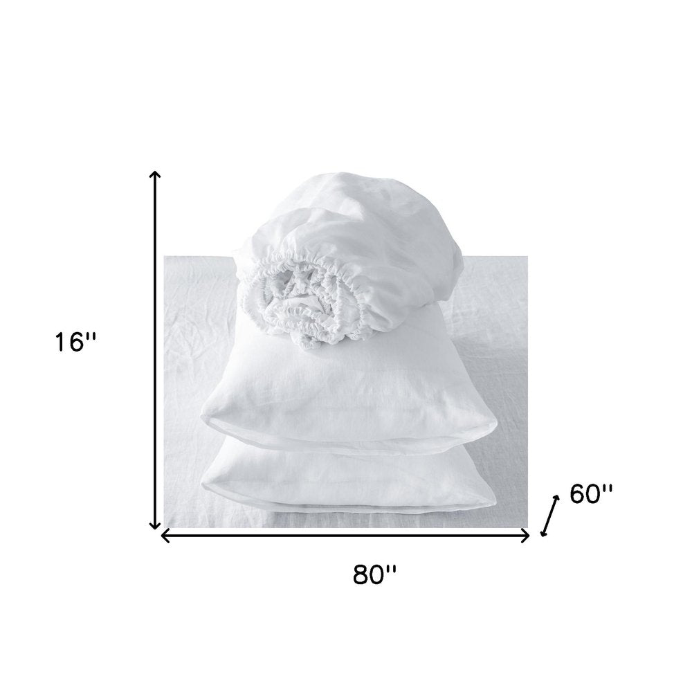 Discover unparalleled comfort and style with this four piece light pink linen sheet set. Crafted from premium quality linen that is known for its moisture wicking properties to keep you cool and comfortable, these sheets are a luxury but so worth it. They are breathable, have a soft thick texture that will get softer over time, and are wrinkle resistant (not wrinkle free). Crafted with care for a peaceful night’s sleep. 16-inch h x 80-inch w x 60-inch d.
