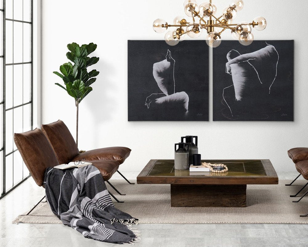 Add a touch of industrial design to your home with this Gold Metal Eighteen Bulb Hanging Chandelier. This hanging light is made from solid metal and has a very simple contemporary feel to it. There is one metal rod that runs down from the ceiling to the main body of this hanging chandelier. In the middle of the body there is a thick gold cylinder that has thin metal rods coming out of it. These rods have small bulb holders on the ends of them. The glass bulb shades also add to the industrial feel with small filament bulbs inside them which have a very bright yet diffused light. Elevate any space you want around your home with this hanging light. 16" H x 50.5" W x 50.5" D