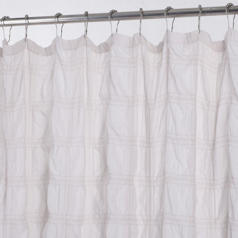 Nothing beats the soothing sensation of a refreshing shower after a long day, and with this Pale Pink Modern Striped Crinkle Shower Curtain, you can turn that experience into a spa-like experience. The soothing pale pink base with slightly darker-toned horizontal striped silhouettes lends a touch of modern simplicity and freshness to any space for a calming vibe, making it an ideal accent for any bathroom arrangement. Made of polyester fibers in a crinkle fashion for added texture while being super durable to last long and easily washable by hand and machine. This curtain will not only add more privacy to your bathroom space and keep splashes off the floor but also be a decorative accent to your shower area. Meant to be a fashionable and functional piece of decor, this minimalistist shower curtain will evoke an airy ambiance with a sense of luxury in your modern bathroom space. 70” x 72”