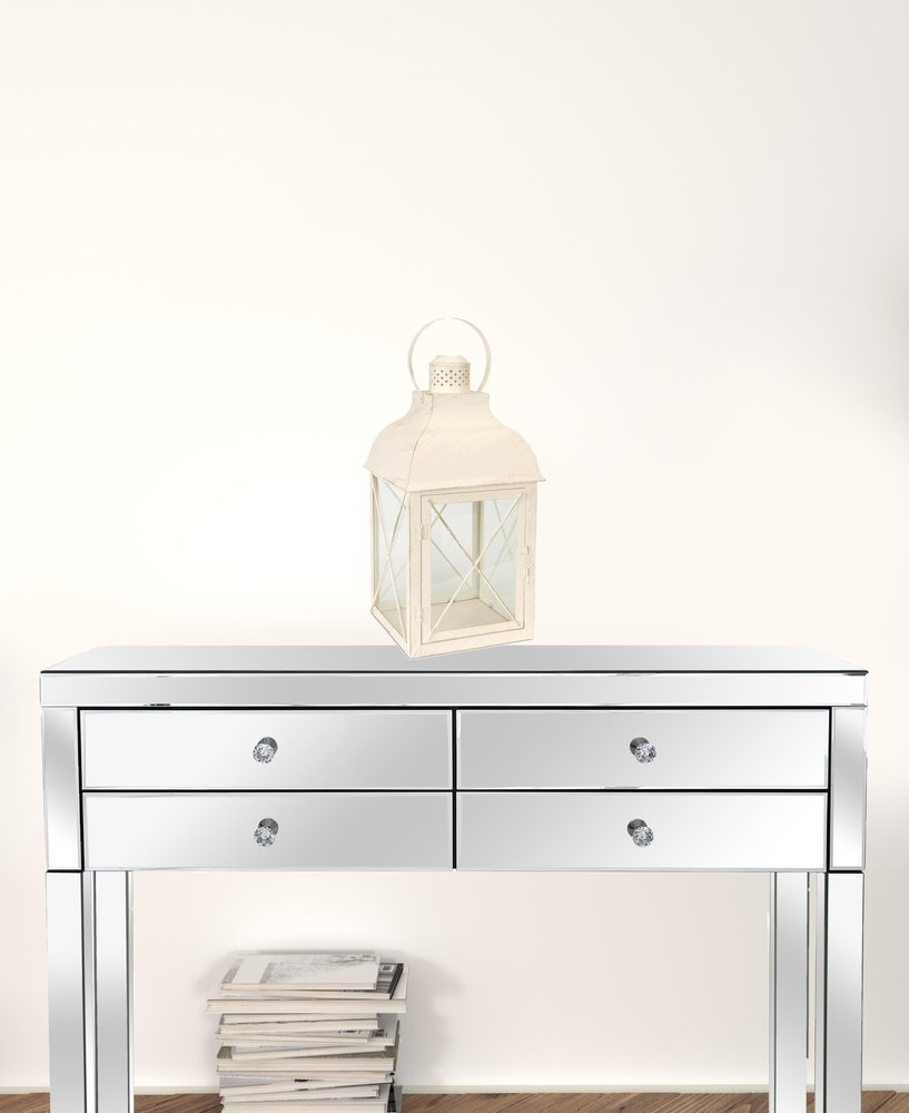 This set of three ivory distressed geometric glass and metal floor lantern candle holders is perfect whether you’re creating a beautiful tablescape centerpiece or looking to illuminate a space. Add an extra pop of personality to every corner of your home with this gorgeous candleholder candleholders are an attractive way to turn a simple candle into a piece of décor. Crafted with a rustic style, these lanterns feature a purposeful coat/paint distressing that enhances their character. Suitable for both tealight and pillar candles, they provide versatility in your lighting options. The geometric decoration pattern adds a modern touch, making them ideal for any room. Standing at a height of 8.25 inches, they create a striking visual impact in your living space. 18.5-inch h x 9.5-inch w x 9.5-inch d.