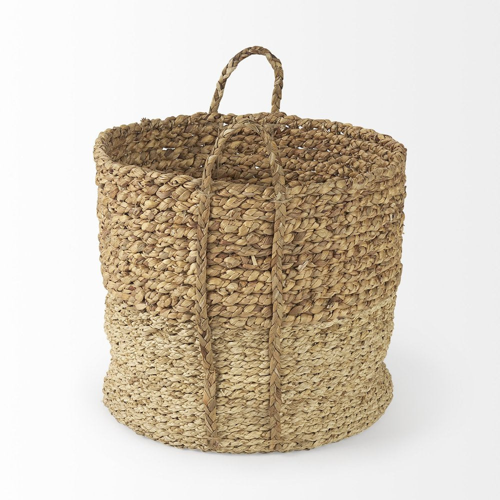 This Set of Three Two Tone Wicker Storage Baskets is the perfect way to add rustic design and practicality to your home. There are three baskets in this set that are made from wicker and have a woven design in a horizontal pattern. There is a braided top half on all three of these baskets while the bottom half has a thinner braided design. The top half of these baskets has a dark brown color while the bottom half has a light brown color. The handles on either sides are thinly braided and are in the same dark brown color. This set has varying sizes of baskets allowing you to use them for whatever purpose you need. These simple wicker baskets are great to store your blankets in the living room, or toys in the children's room. You can keep your home clutter free all the while adding some design to it as well. 15.74" H x 15.74" W x 15.74" D