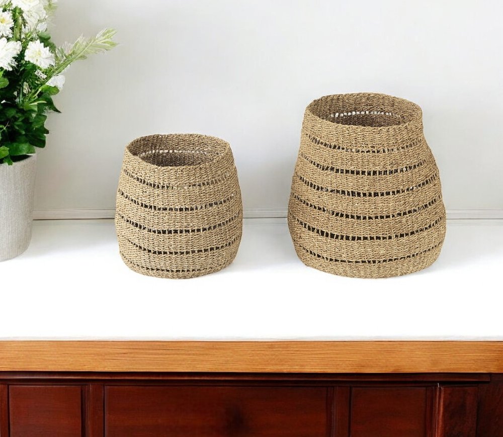 Elevate your home organization with this set of two 18-inch coastal-style brown wicker baskets. Crafted from durable wicker, these stylish baskets provide a charming storage solution for any room in your home. The natural brown color adds warmth and texture to your space while effortlessly complementing your existing decor. Each set includes two generously sized baskets, perfect for storing throw blankets, magazines, toys, or potted plants. Keep your belongings neatly tucked away in these versatile and practical organizers, adding a touch of rustic elegance to your living space. Ideal for adding a touch of coastal charm to your home, these wicker baskets combine style and functionality seamlessly. 11.81-inch H x 17.72-inch W x 17.72-inch D
