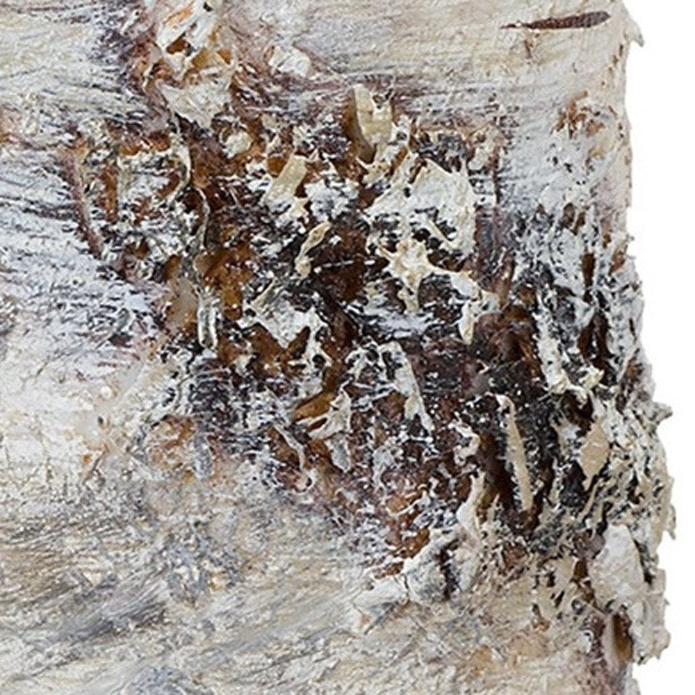 Set of Two Beige and Ivory Faux Birchwood Flameless Pillar Candle