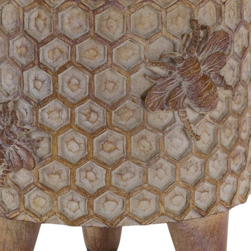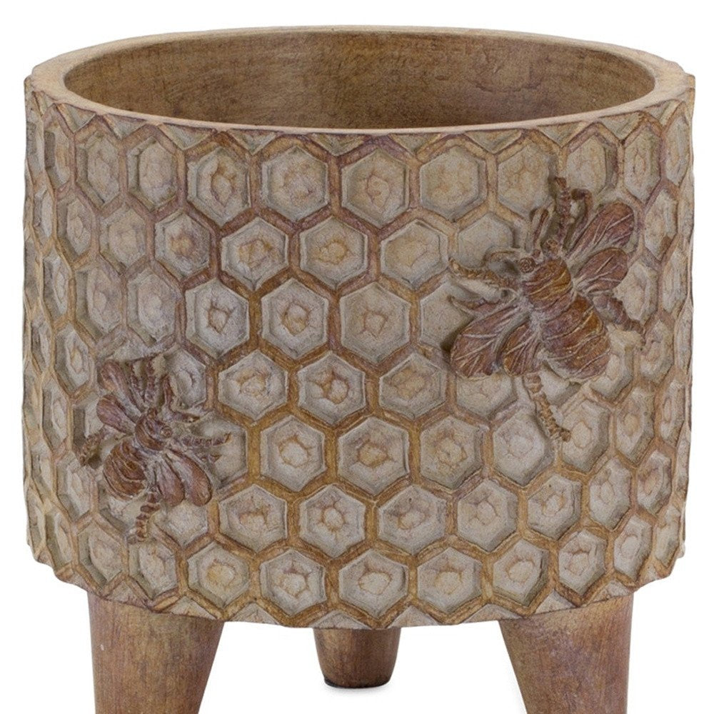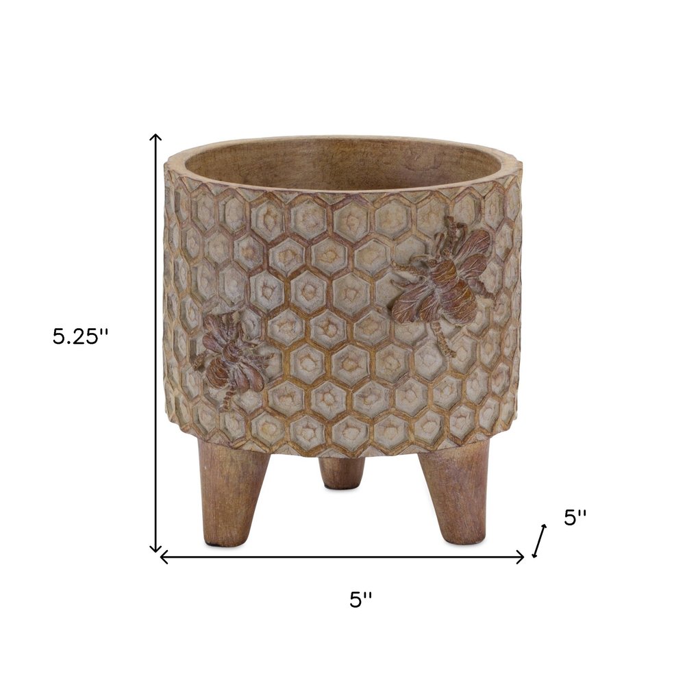 The set of two brown polyresin 3 ounce bumble bee pot planters brings a charming touch to any indoor space. Featuring a cylindrical shape with splayed feet, these planters provide an ideal home for small plants and succulents. With a capacity of 3.32 ounces, they are perfect for enhancing your decor without overwhelming your space. The fun bumble bee and honeycomb design with purposeful distressing adds a rustic appeal. Each pot measures 3.5 inches in height, ensuring a compact fit on shelves or windowsills. Crafted from durable polyresin, these planters not only showcase your greenery but also stand the test of time while adding a delightful character to your home decor. 5.25-inch h x 5-inch w x 5-inch d.