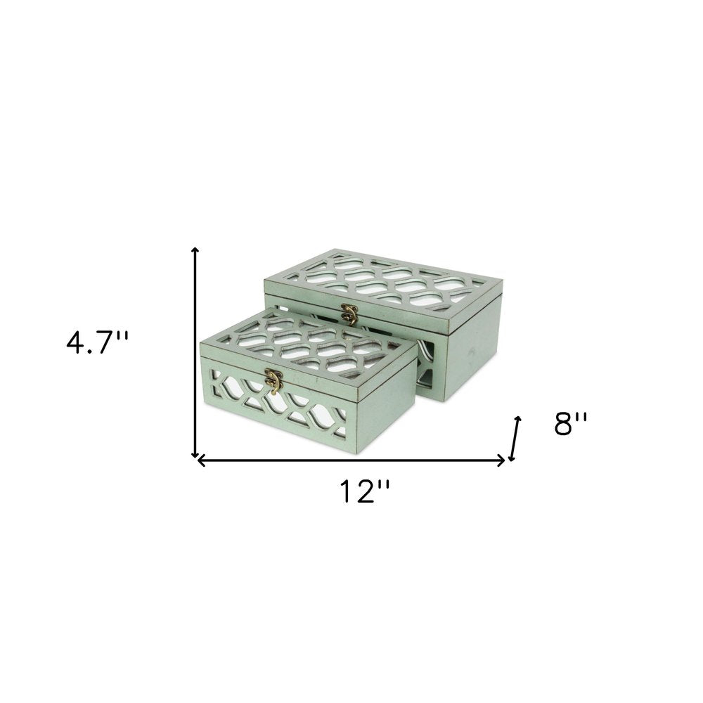 Set of Two Green Wood And Mirrored Glass Boxes
