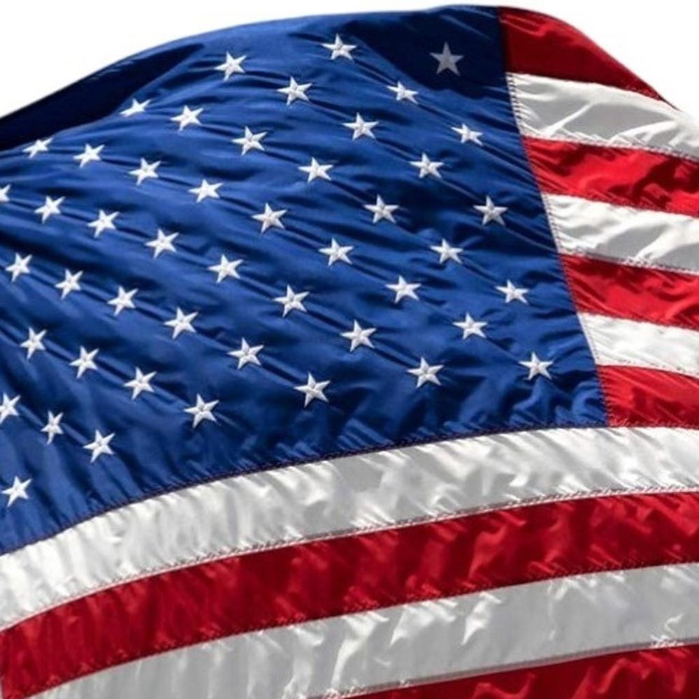 The set of two red white and blue embroidered nylon American flags adds a patriotic touch to your outdoor decor. Made from durable heavy duty nylon, these 3' x 5' flags are designed to withstand the elements while maintaining their vibrant colors. This flag set will not only enhance your outdoor decor but also serve as a symbol of USA pride and unity. Elevate your space with this timeless set that embodies the spirit of freedom and American heritage. 36-inch h x 50-inch w x 0.1-inch d.