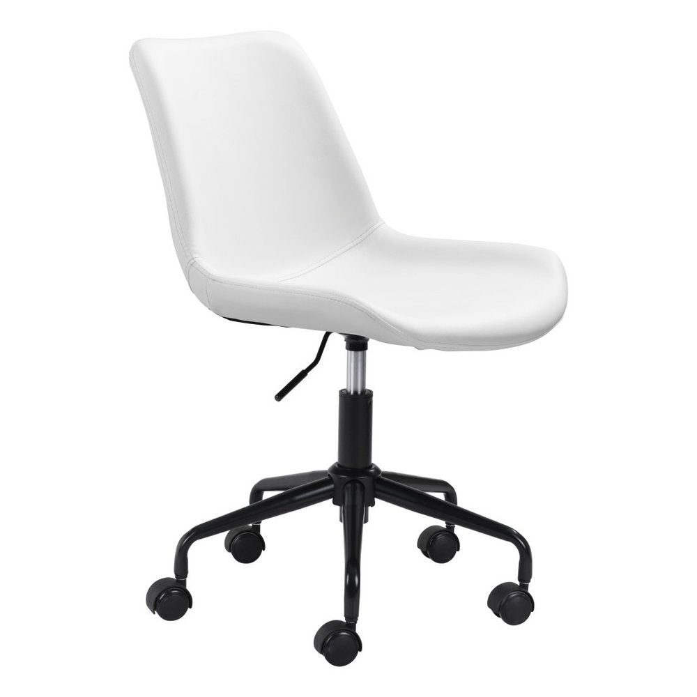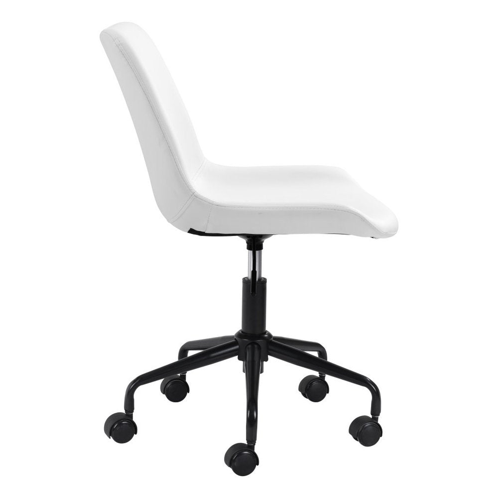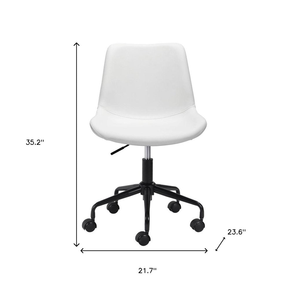 White and Black Adjustable Swivel Faux Leather Rolling Office Chair