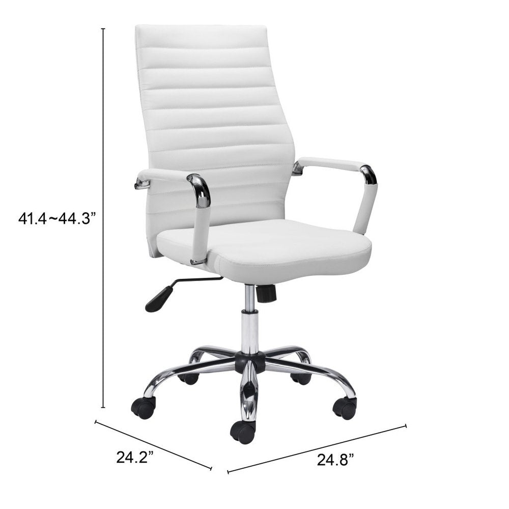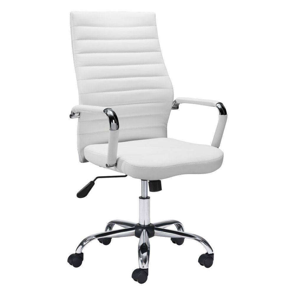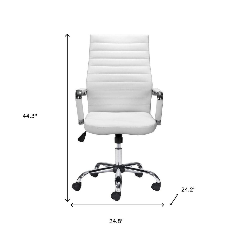 White and Silver Adjustable Swivel Faux Leather Rolling Conference Office Chair