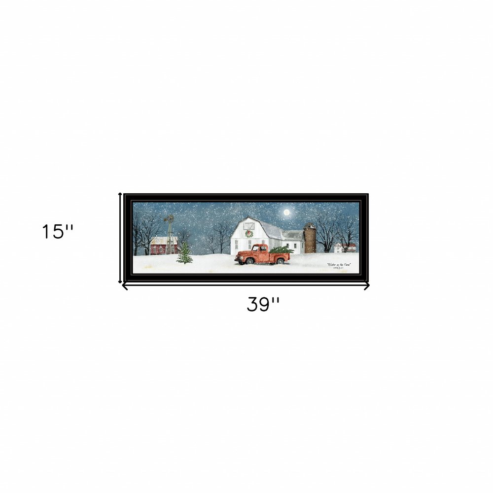 Unique and decorative, this winter on the farm 4 black framed print wall art will leave a lasting impression. This print is a visual artistic expression that allows you to decorate your space in style. Reproduced for you on paper, this hanging decorative accent will be a trendy and fashionable way to dress your walls. Hang on your wall to add some up to date fashion and decoration. Utilize this opportunity to create a focal point in the room with this fabulous wall decor option. 15-inch H x 39-inch W x 1-inch D
