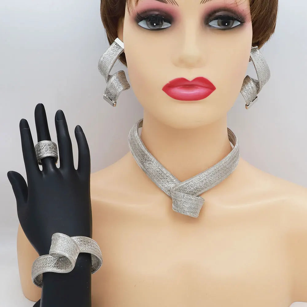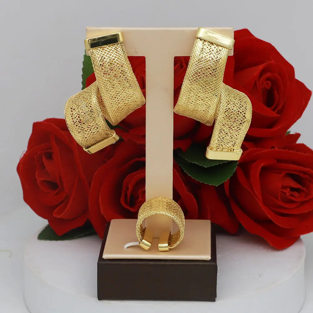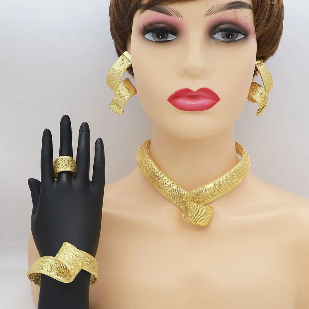 Women's Jewelry Sets Gold Plated Sprial Necklaces Simple Earrings Italian Fashion Rings Bracelets