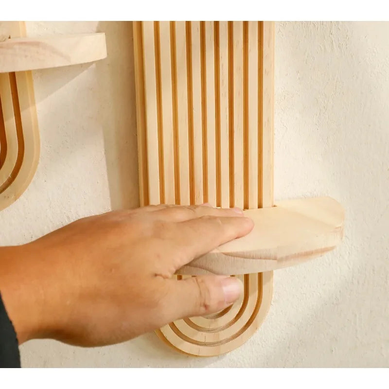 Wooden Wall Shelf - Boho Style Modern Home Decor for Living Room or Bathroom Display