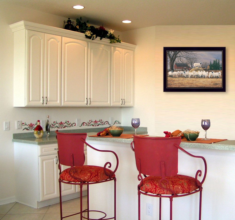 Add an air of fashion to your room and rejuvenate the space with this wool gathering 1 black framed print wall art. This print is a visual artistic expression that allows you to decorate your space in style. Reproduced for you on paper, this hanging decorative accent will be a trendy and fashionable way to dress your walls. Adding this hanging wall art to your space to make your room feel more finished and attractive. Instantly liven up your space with this art that brings color and dimension to your walls. 14-inch H x 20-inch W x 1-inch D