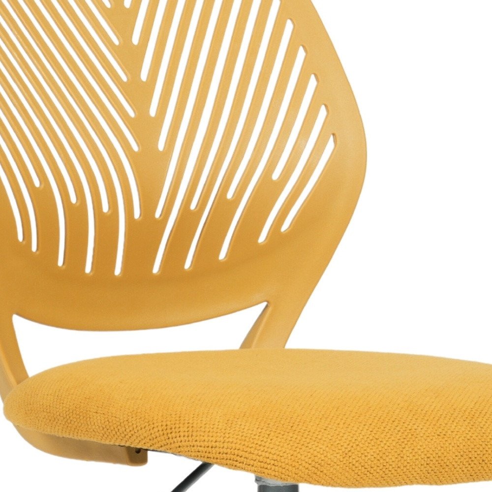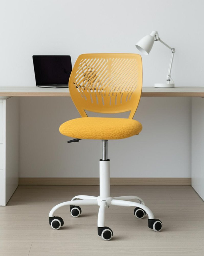 Far from just a perch when studying or working, this stylish yellow and white adjustable height swivel rolling office chair brings style and function to your workspace. The high quality steel frame and construction and add durability, strength and support to the design. Includes a soft padded and upholstered seat and pierced mesh-like back designed for optimal air circulation and comfort. This design is height-adjustable to personally tailor your space. Furnish you office, dorm, or home office in comfort and style with this high quality office chair. 34.20-inch h x 17.70-inch w x 15.20-inch d.